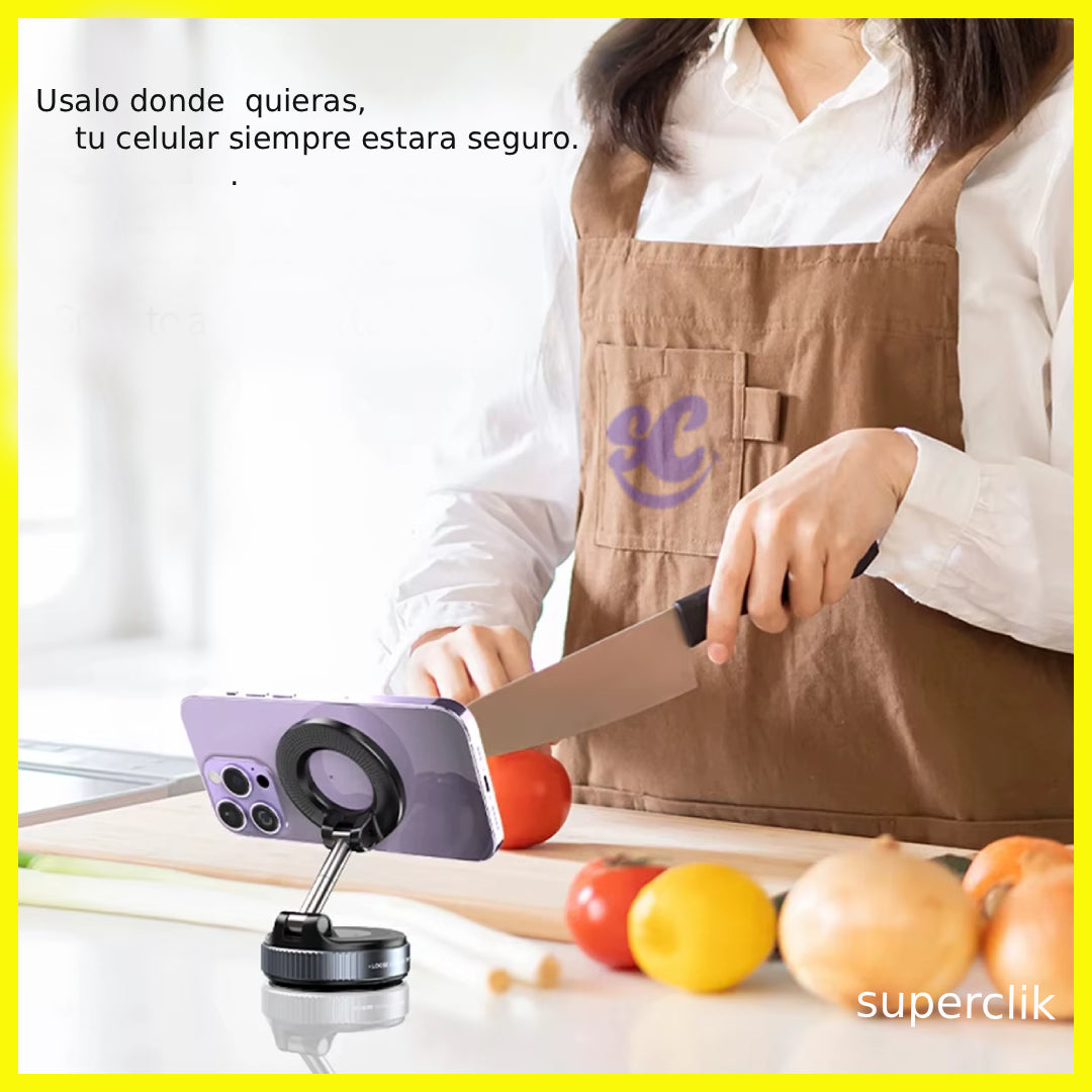 Este soporte magnético tipo MagSafe mantiene tu teléfono firme mientras manejas o trabajas, gracias a su imán de alta potencia y su diseño plegable. Ocupa muy poco espacio y se puede ajustar en altura e inclinación para que siempre tengas el mejor ángulo.